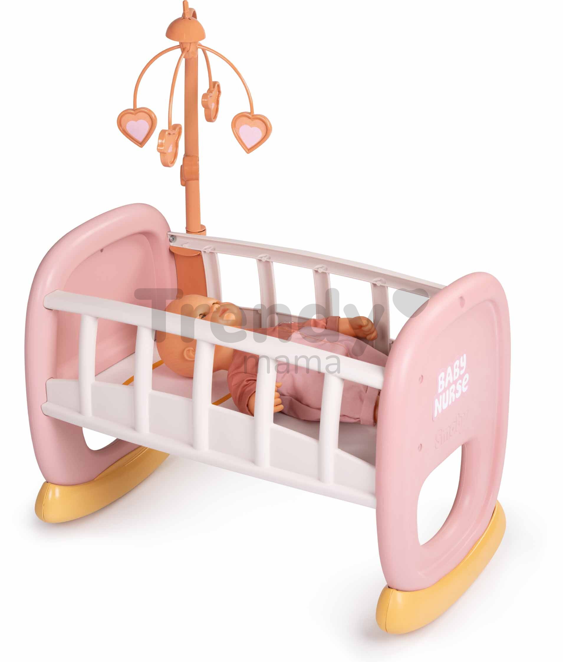 A Baby’s Cot Soft babaágy kiságyforgóval a népszerű Baby Nurse kollekcióból a francia Smoby gyártótól egy gyönyörű bölcső és egyben babaágy is, amely legfeljebb 42 cm-es játékbaba számára készült. A finom rózsaszín kivitelű, francia dizájnnal készült bölcső első pillantásra elbűvöli a kis anyukákat. Az ágy része egy kiságyforgó is, amely a baba feje fölött található, és segíti annak elaltatását. A kislányok ebben a gyönyörű babaágyban ringathatják, altathatják babájukat, és sok örömteli pillanatot élhetnek át vele. A lekerekített formák finoman lengedeznek már egy apró érintésre is – így a gyermek könnyedén álomba ringathatja kis kedvencét.