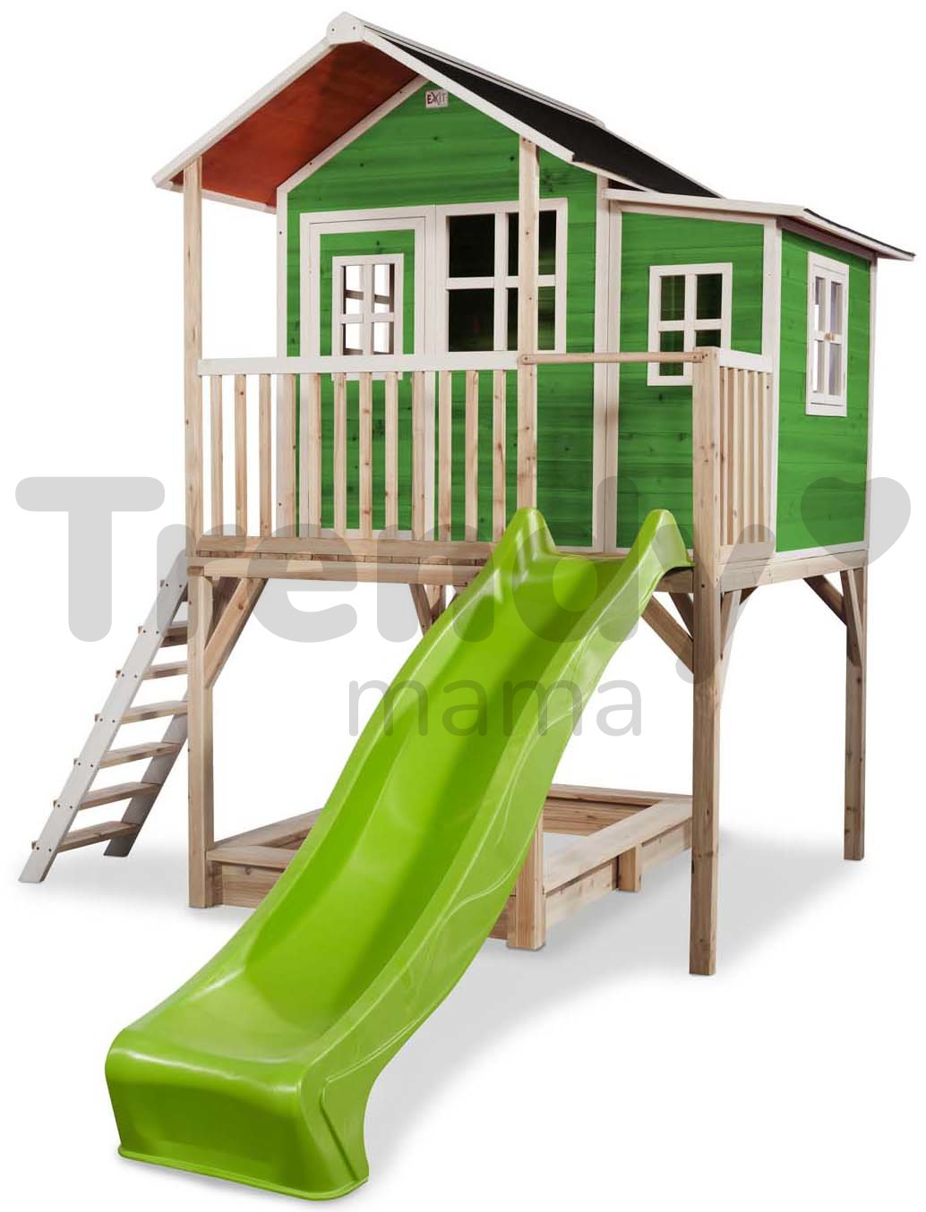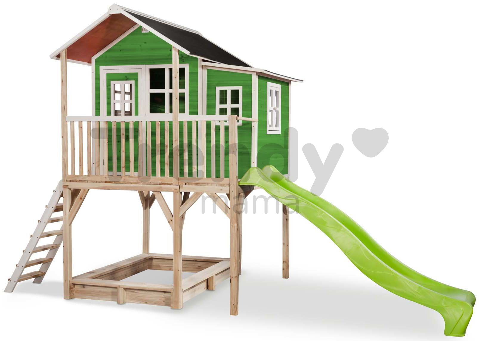 Fa házikó gyerekeknek az Exit Toystól. Cédrus házikó pilléreken Loft 750 Green homokozóval és csúszdával fiúknak és lányoknak 3 évtől ajánlott.Az általunk használt sütik megkönnyítik weboldalunk használatát a felhasználó számára. A sütik továbbá lehetővé teszik egyes funkciók megfelelő működését, mint például a rendelés folyamatát vagy a termék kosárba helyezését,.