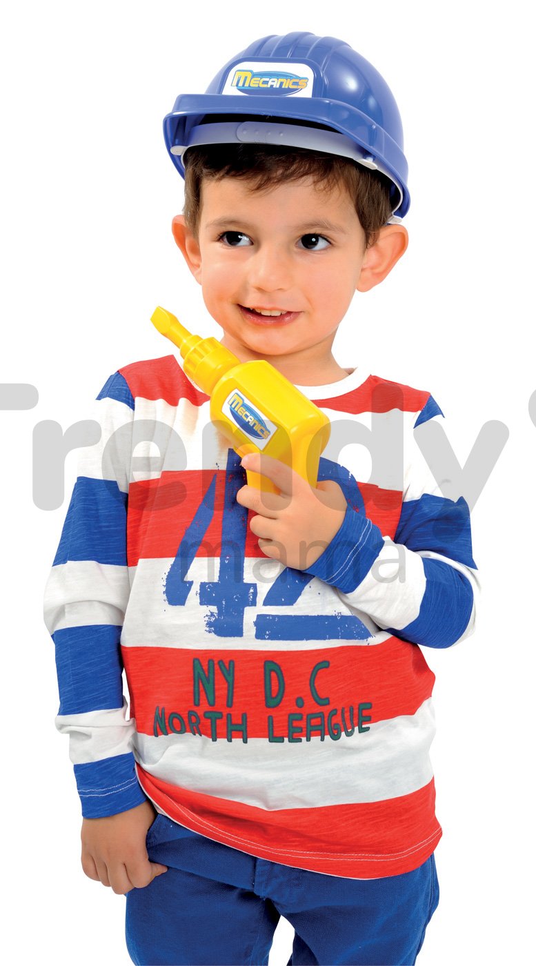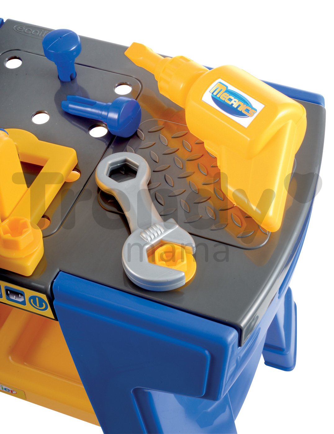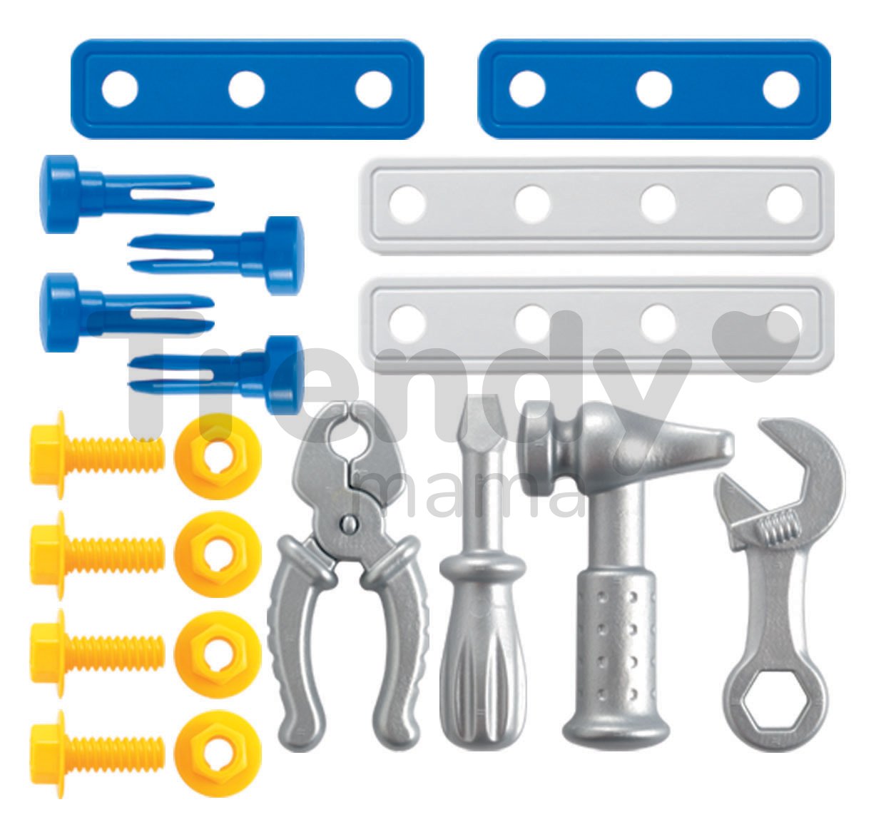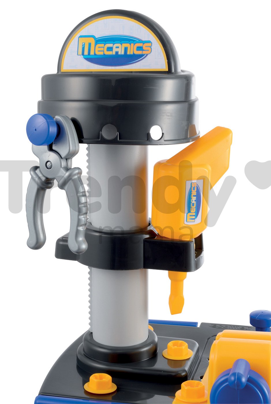 Gyerek szerelőműhely Mecanics egy lenyűgöző játék kisfiúknak 18 hónapos kortól, amely kék-sárga színbe hangolt szürkével és feketével kiegészítve. Tartozik a kisfiús műhelyhez egy szállítókocsi nehéz teher áthelyezéséhez vagy a szerszámos bőrönd hordozásához, védősisak a kis mester fejének védelmére, valamint további kiegészítők, amelyek nem hiányozhatnak egy kis segédmunkás vagy szerelő műhelyéből sem. Minden megtalálható a gyerek műhelyben, amire kis szerelőmesternek szüksége lehet: kalapács, csavarkulcs, csavarok, anyák, fogó, satu vagy fúrógép, ezeket a hordozható szerszámosládában viheti magával bárhová, ahol segítségre van szükség.
