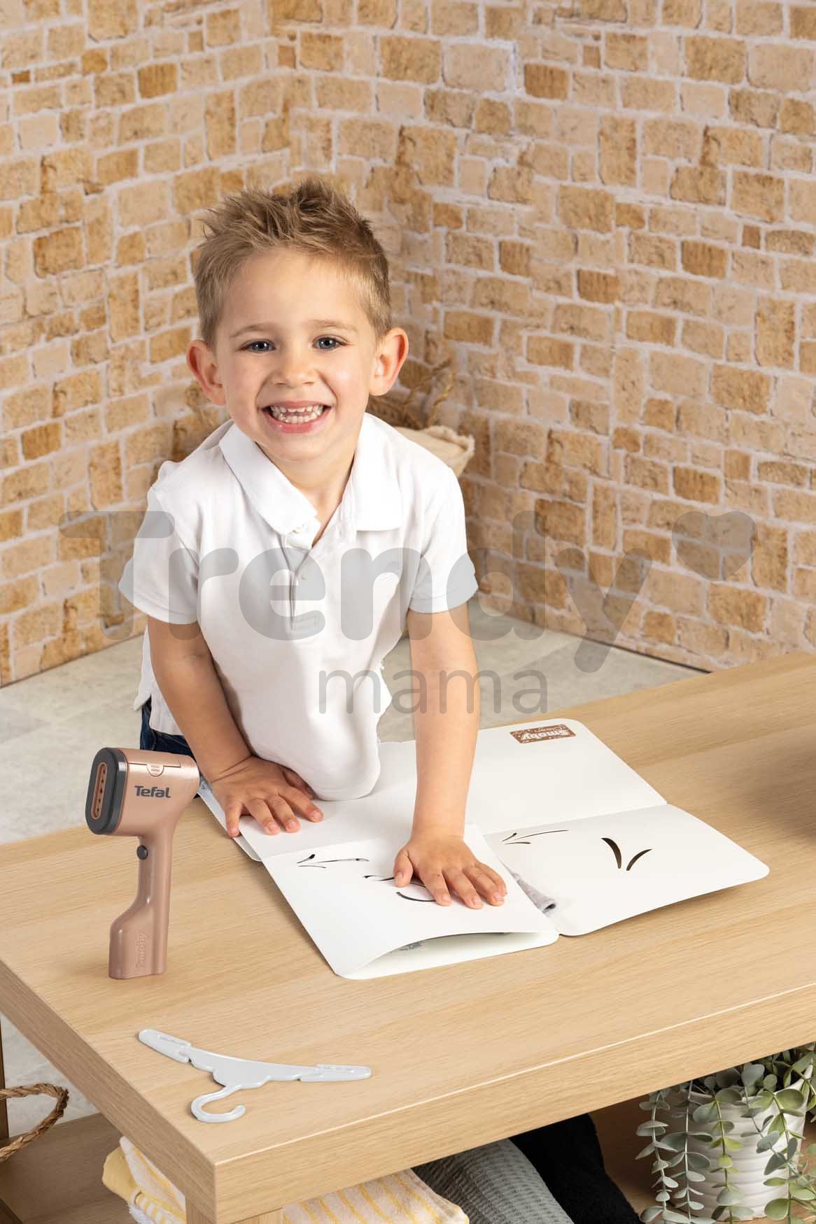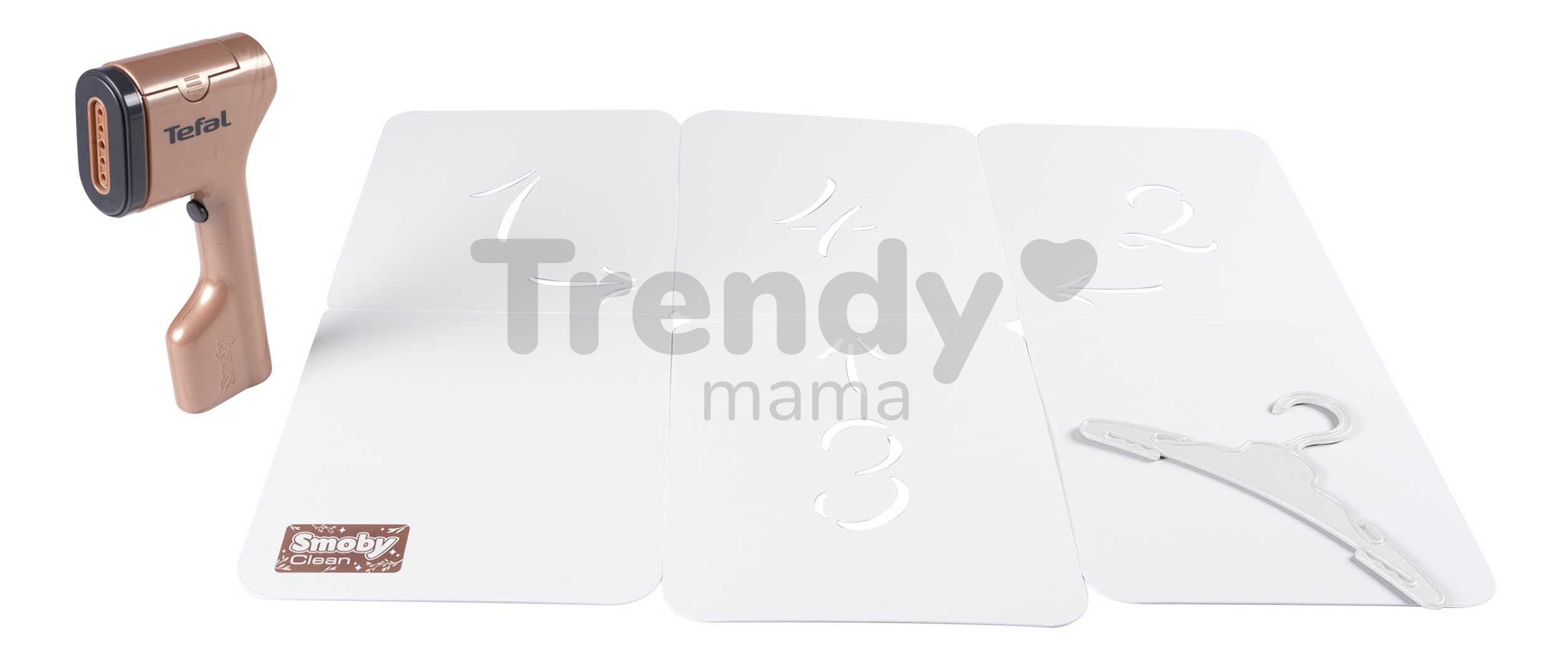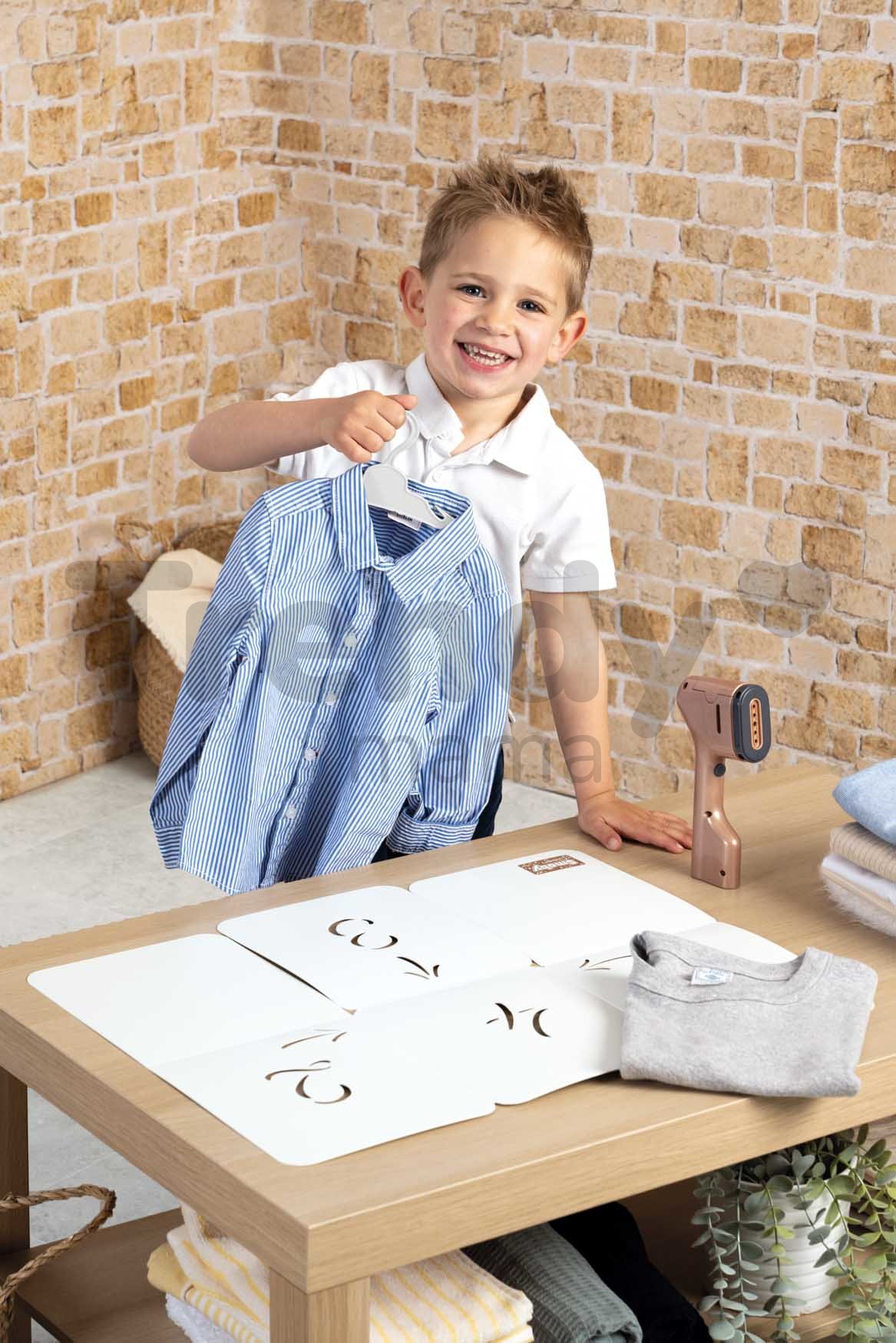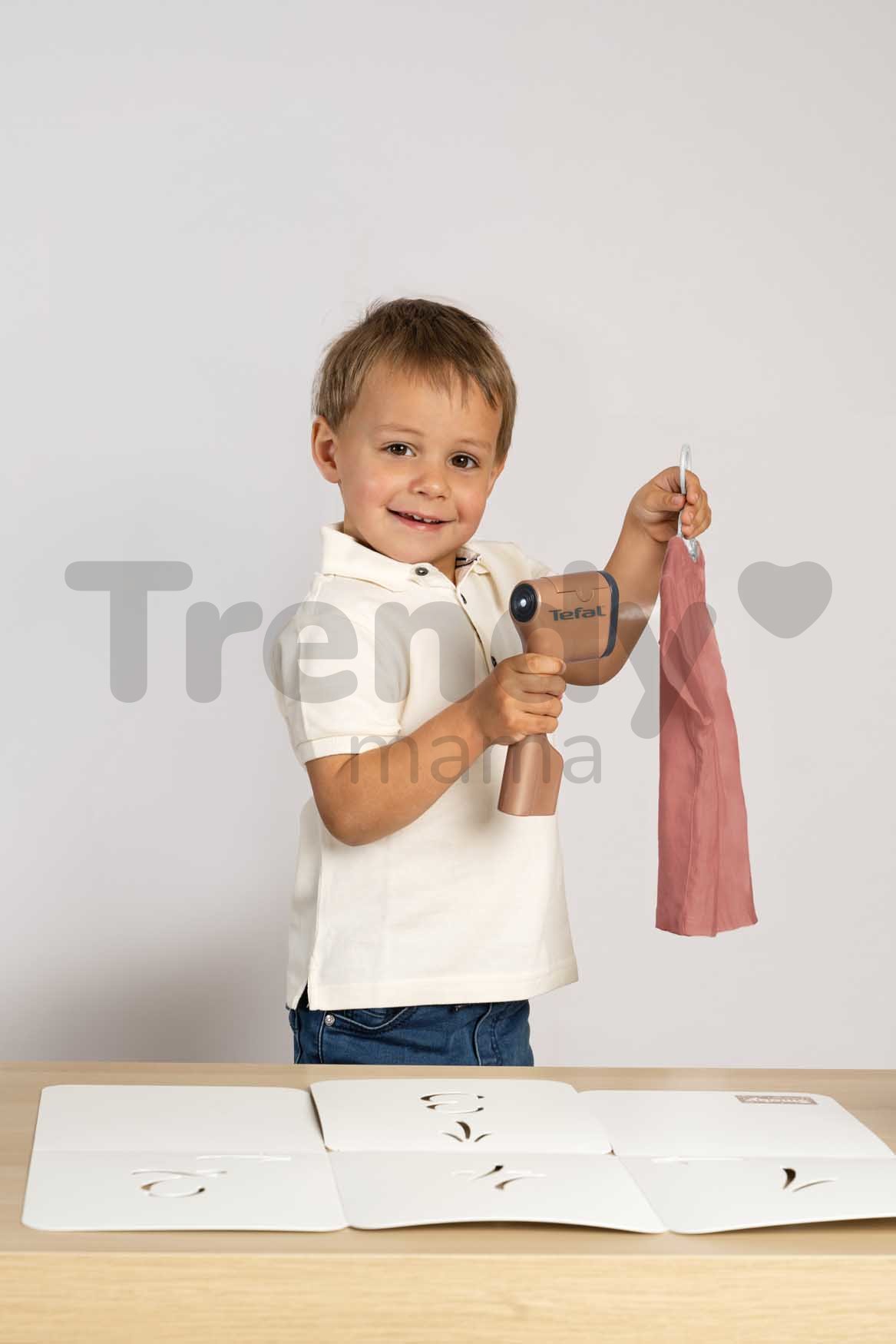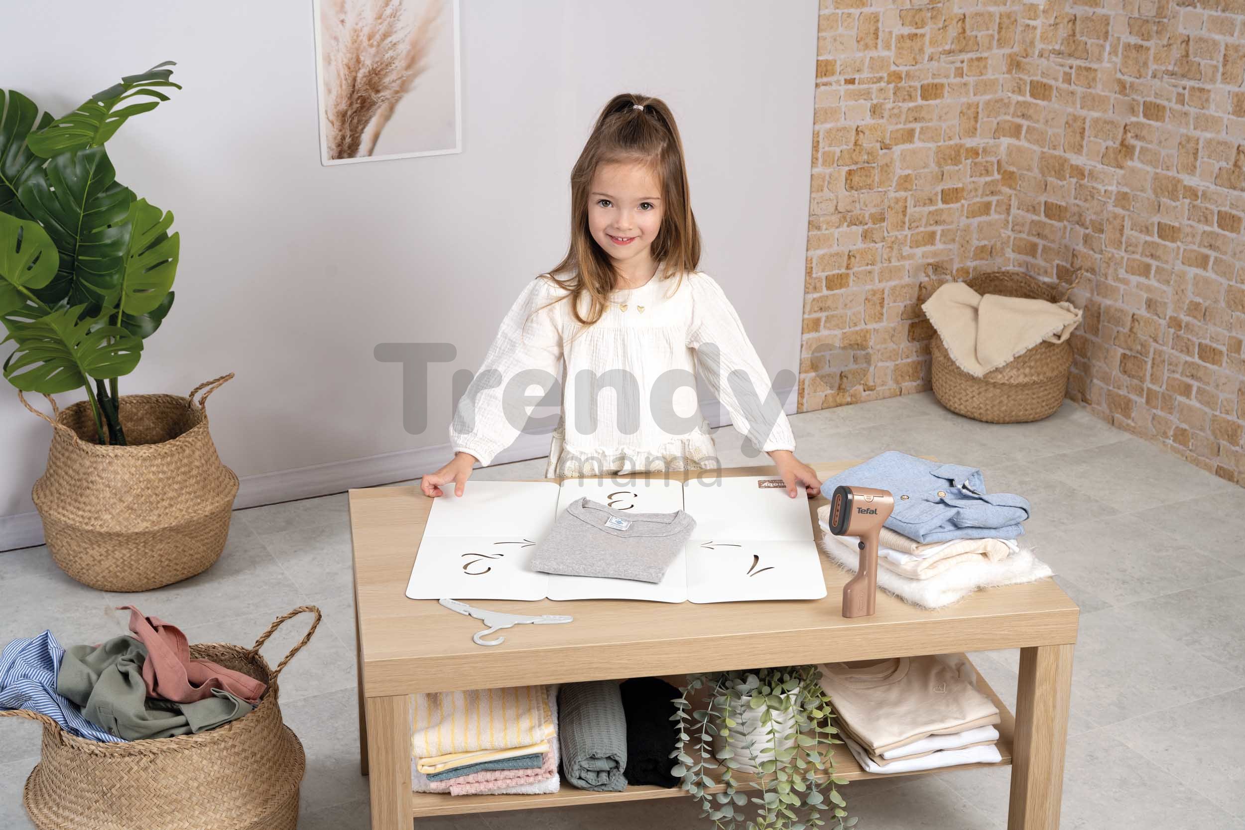 A Tefal Steam&Fold Set kézi ruhagőzölő és ruhahajtogató tábla szett a francia Smoby tervezőitől remek ajándék minden gyermek, különösen a 3 évesnél idősebb kislányok számára. A hajtogatótábla már első pillantásra felkelti a gyerekek figyelmét, praktikus kialakításának köszönhetően pedig könnyen és játékosan megtanulhatják, hogyan kell összehajtani a ruhákat. A tábla részei számozva vannak, ami megkönnyíti a helyes sorrend elsajátítását. Kinyitva a tábla mérete kb. 54 × 43 cm, így a kislányok kényelmesen tudják használni.