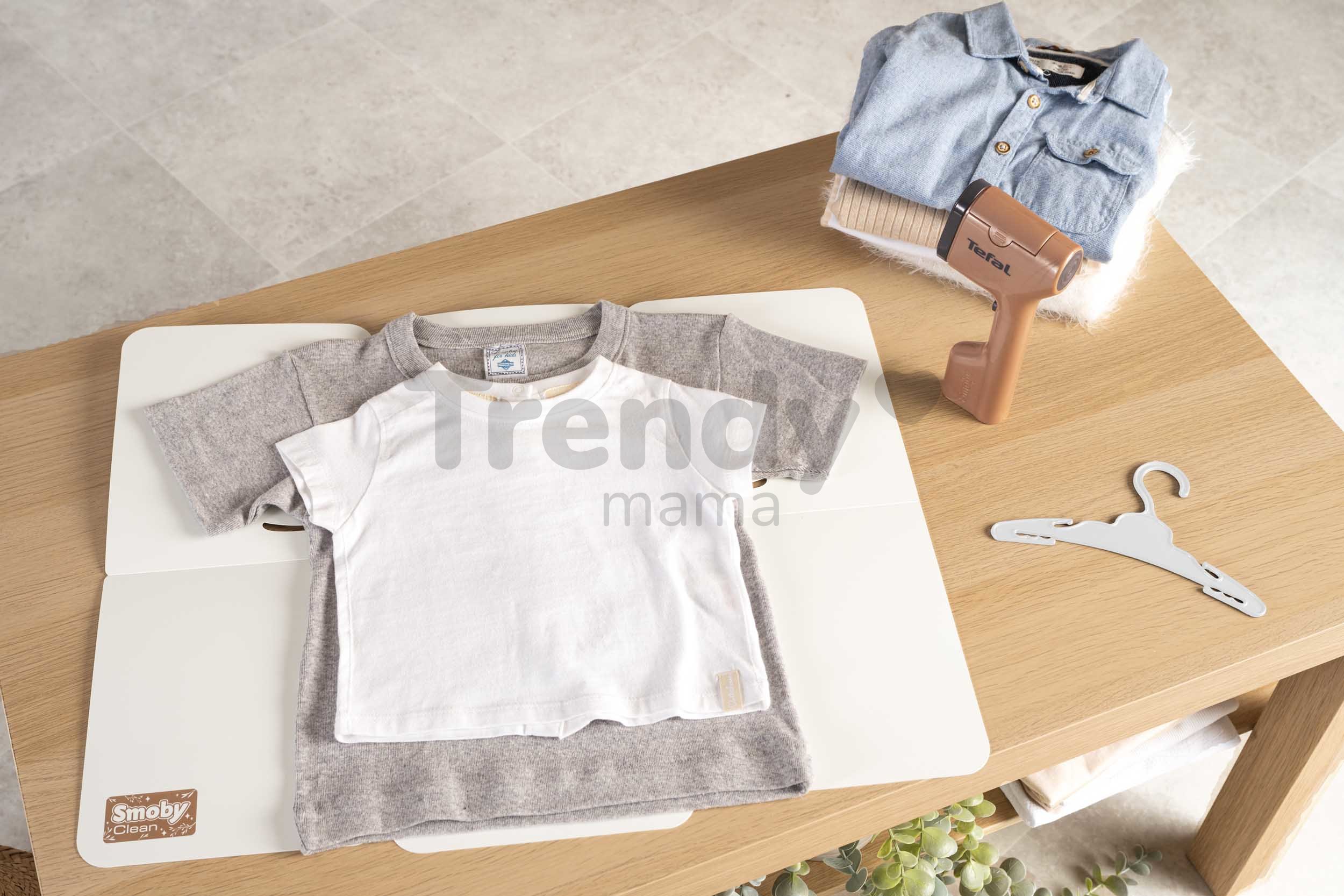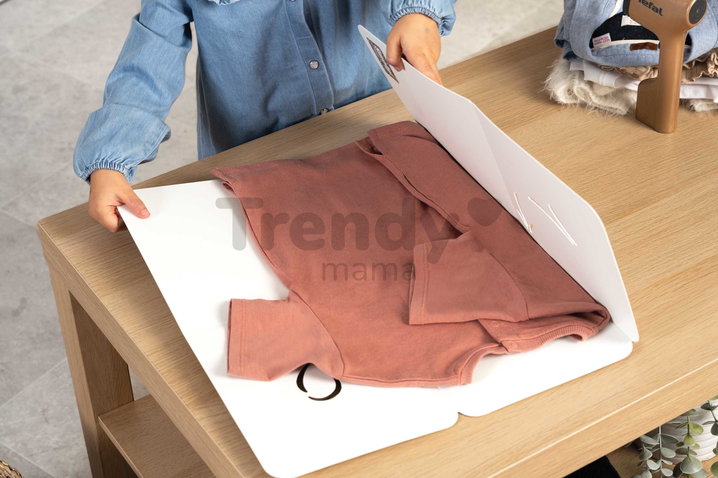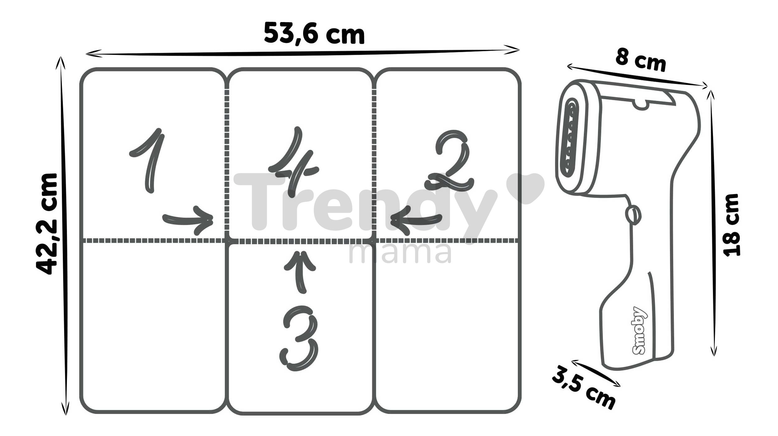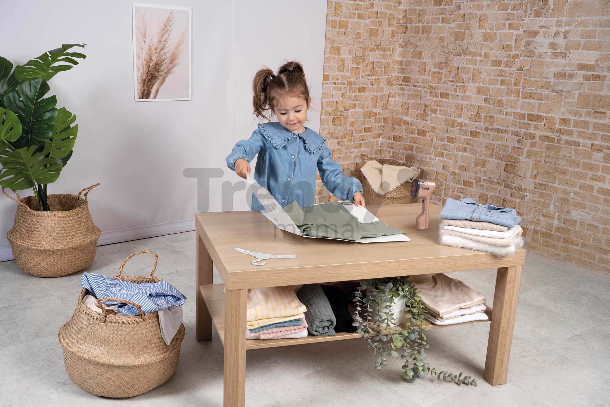 A Tefal Steam&Fold Set kézi ruhagőzölő és ruhahajtogató tábla szett a francia Smoby tervezőitől remek ajándék minden gyermek, különösen a 3 évesnél idősebb kislányok számára. A hajtogatótábla már első pillantásra felkelti a gyerekek figyelmét, praktikus kialakításának köszönhetően pedig könnyen és játékosan megtanulhatják, hogyan kell összehajtani a ruhákat. A tábla részei számozva vannak, ami megkönnyíti a helyes sorrend elsajátítását. Kinyitva a tábla mérete kb. 54 × 43 cm, így a kislányok kényelmesen tudják használni.