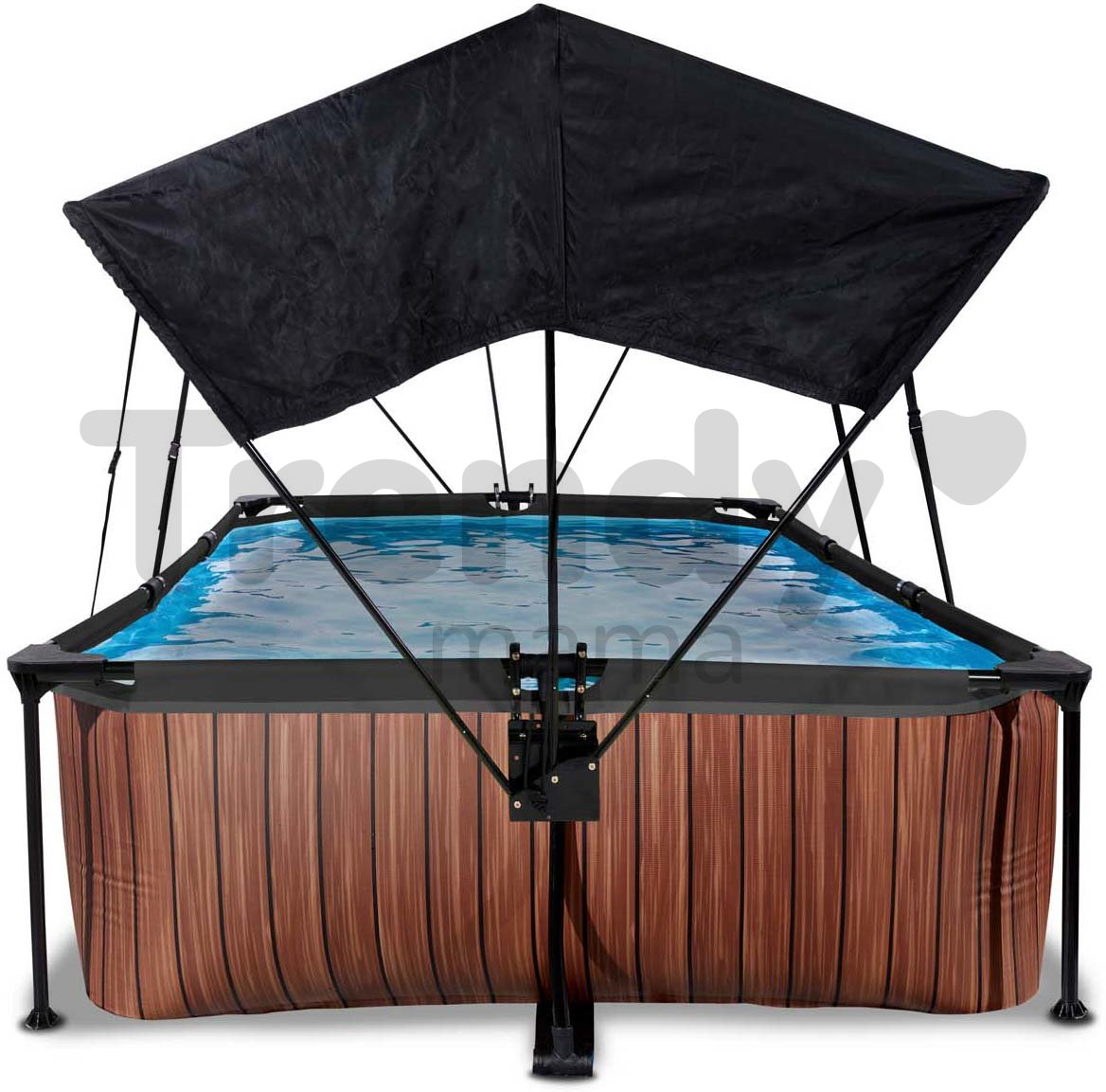 Medence napellenzővel és szűrős szivattyúval Wood pool a holland Exit Toys műhelyéből egy 300*200 cm méretekkel rendelkező föld feletti medence, mely szülőknek és gyerekeknek egyaránt kellemes felfrissülést nyújt majd a nyári hőségben. Barna robosztus medence oldalfala famintával minden udvart és kertet még szebbé varázsol, erős acél medencekeret portechnológiával kezelve ellenáll a korróziónak és a kedvezőtlen időjárási viszonyoknak egyaránt. Medence a 10 erős fém lábnak köszönhetően nagyon stabil, szilárdan megáll a helyén. A víz tisztaságáról kazettás szűrőszivattyú gondoskodik, mely biztosítja a zavartalan vízáramlást és egyben tisztítja is azt.