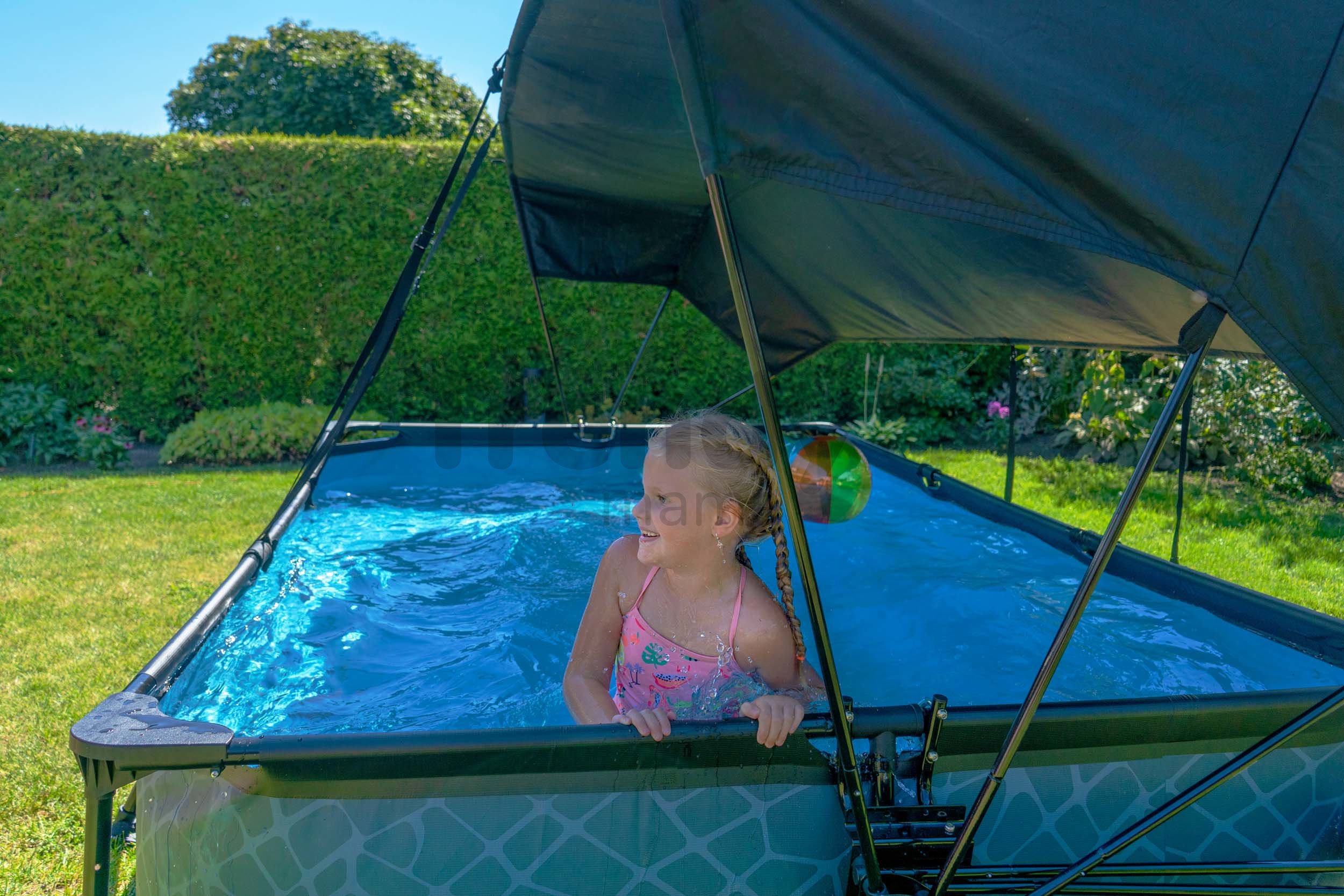 Minőségi napellenzők medencére az Exit Toystól. Napellenző medencére 220*150 cm méretekkel védelmet nyújt a nagymértékű napsütéssel szemben.