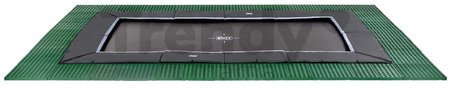 Trambulin ugrófelület Dynamic Groundlevel a holland Exit Toys műhelyéből egy minőségi süllyesztett trambulin 275*458 cm méretekkel kicsik és nagyok számára már 3 éves kortól. A masszív és strapabíró trambulinhoz 28 elemből álló csúszásgátló szőnyeg tartozik, melyek a trambulin kerülete mentén elhelyezve kényelmesebb és biztonságosabb ütközési zónát garantálnak, és még a gyeppel is harmonizál. A trambulin 80 db kétoldalas, 25 cm hosszúságú kúpos rugóval van felszerelve, melyek jobb és magasabb ugrándozást tesznek lehetővé, így hosszabb ideig maradnak a levegőben, számos új trükköt kipróbálhatnak és rengeteg nagyszerű élménnyel gazdagodnak.