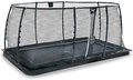 Modern trambulinok védőhálóval az Exit Toys műhelyéből. Süllyesztett trambulin védőhálóval Dynamic méretei 275*458 cm tökéletes választás a kertekbe.