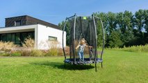 Trambulin védőhálóval Tiggy Junior a holland Exit Toys műhelyéből egy kompakt kerek trambulin 140 cm átmérővel gyerekek részére már 3 éves kortól egészen 5 éves korig. A trambulin szürkés-fekete színű védőszegéllyel van ellátva, alacsony magassága kisebb gyerekek számára is könnyű hozzáférést tesz lehetővé. Tiggy Junior trambulint kifejezetten azoknak a kisgyermekeknek tervezték, akik korai fázisban bátorkodnak az ugrabugrálással összebarátkozni. Ellentétben a fémrugós nagyméretű trambulinokkal, ez a trambulin rugalmas gumiszalagokkal rendelkezik, amelyek sima és lágy ugrálást tesznek lehetővé, így a gyerekek nem fáradnak el olyan gyorsan, és tovább tudnak ugrándozni.
