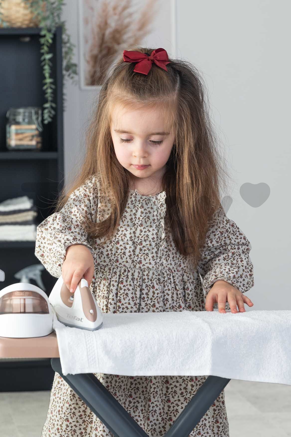 A Tefal Iron gyerek vasaló a francia Smoby gyártótól remek ajándék lehet minden olyan 3 évesnél idősebb gyermek számára, aki szívesen segít otthon a házimunkában. Az eredeti vasalóhoz hűen készült játék sokkal szórakoztatóbbá és kellemesebbé teszi a vasalást a kicsik számára. Tartós, kiváló minőségű, kellemes tapintású anyagból készült, és modern megjelenése minden kislányt elbűvöl. A vasaló forgatható gombbal van ellátva, amely mechanikus „cric-cric” hangot ad ki, így a játék még valósághűbb élményt nyújt. A vasaló méretei: 18 × 8 × 9 cm.
